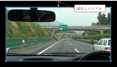 ②「ぼかしハンドル」を上方へドラッグするか、「エフェクトコントロール」パネルの「マスク(1)」の「マスクの境界のぼかし」の数値を大きくします。