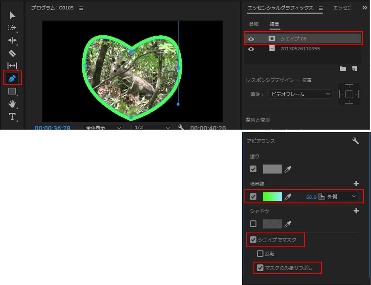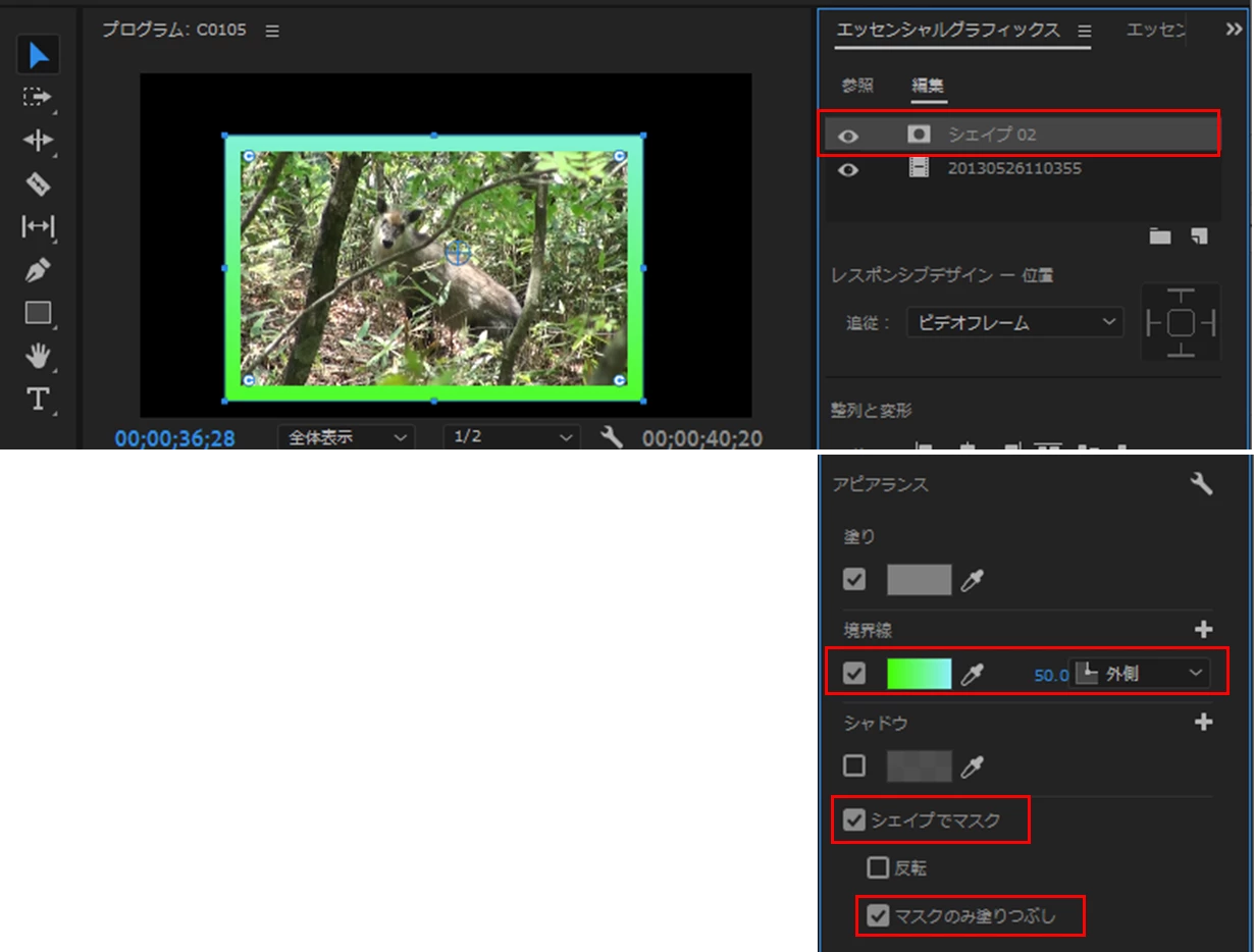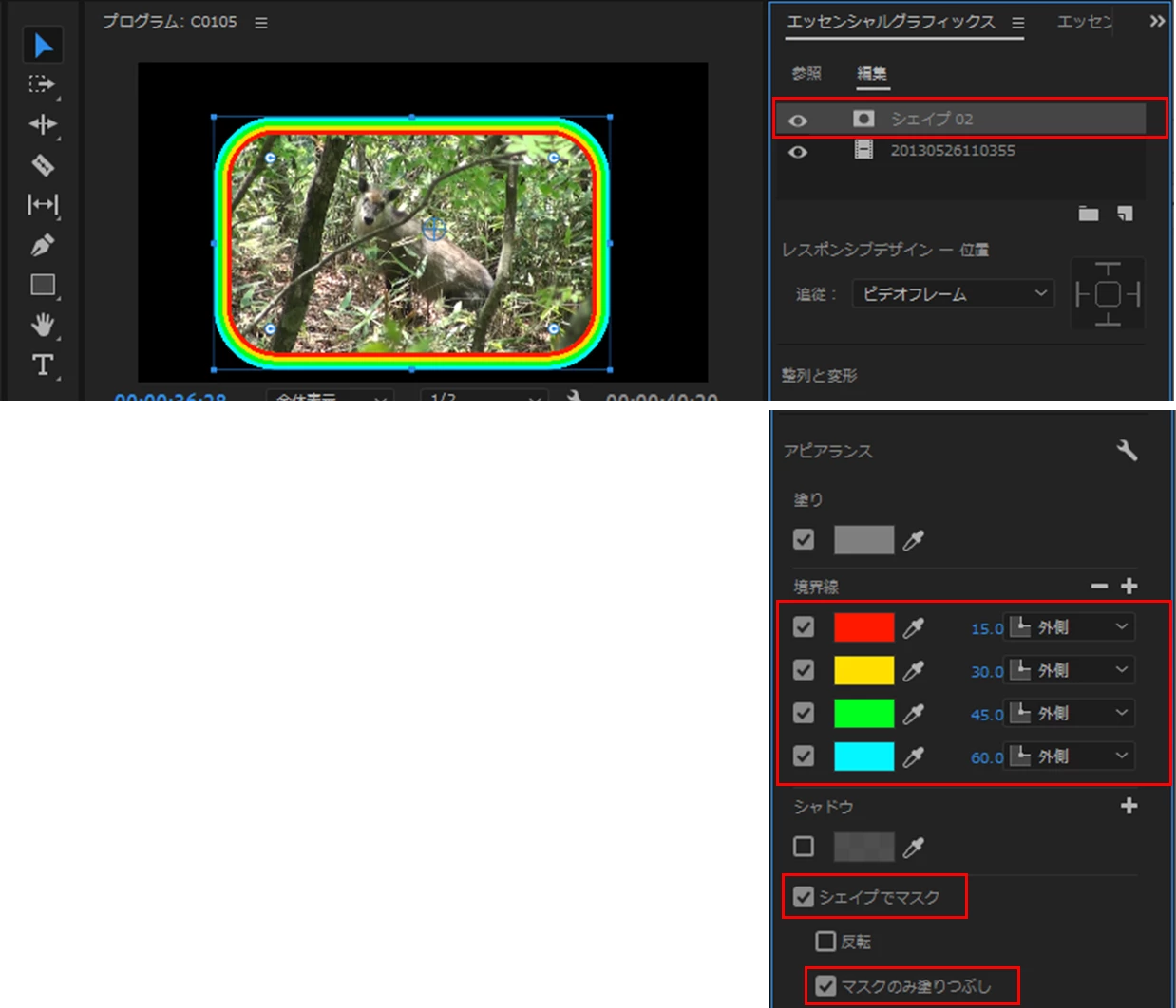 よく検索に出てくる、塗りつぶしとクロップの適用で外枠を付けているのですが、
