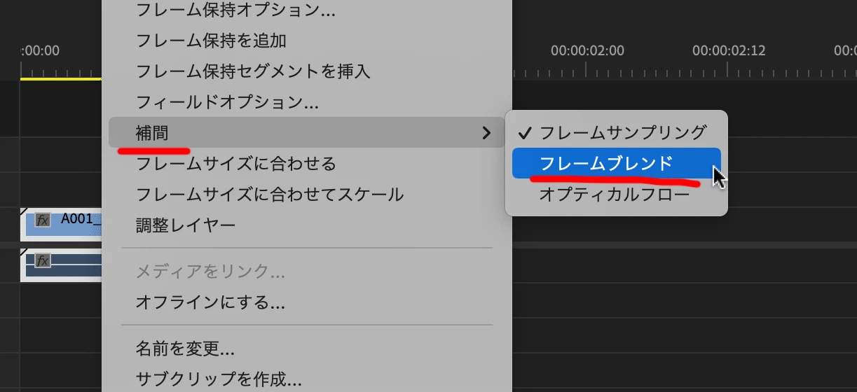 素材次第なのでご希望の効果が得られるか否かはわからないのですが、補完方法を「フレームブレンド」にしてお試しいただくといかがでしょうか。