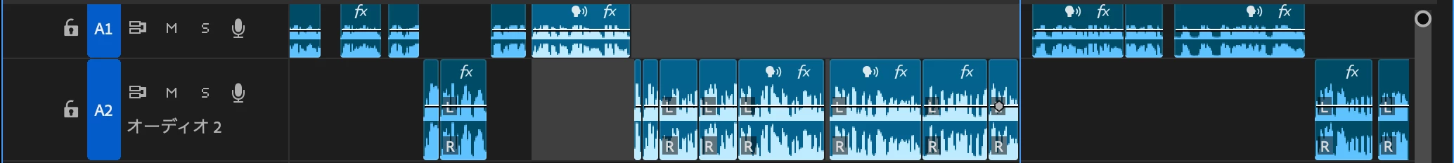 ところがリンクの動画の通り、A1の音声に比して、A2の音声がとても、小さく、弱くなってしまっています。A2のオーディオゲインなどを調整したのですが、イマイチ変わりません。