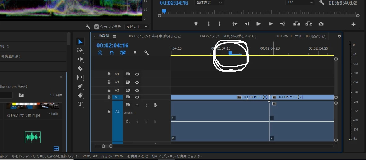 白いまるで囲った部分の右に出っ張っている所を