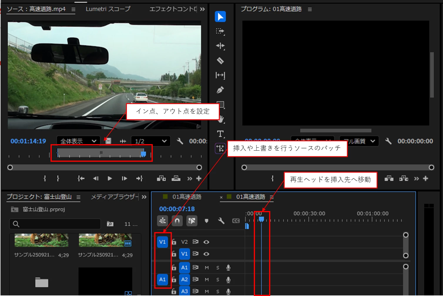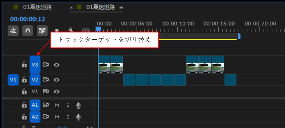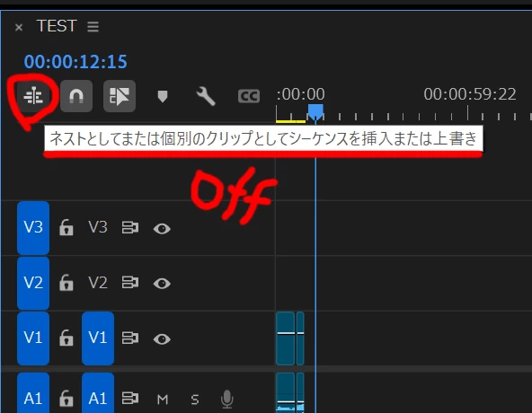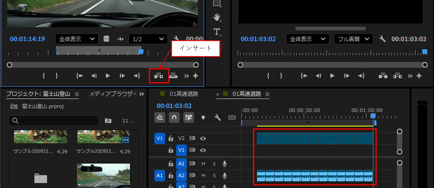 私が添付した動画がちょっとわかりにくかったので(途中まで素材シーケンスを閉じるのを忘れて開きっぱなしになっていたり……)、動画を差し替えました。