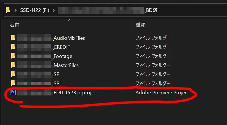 仕事の内容により多少使い分けの仕方が異なりますが、クライアントごとにSSDを用意し、そのなかに「制作年月_作品名(例:2023-12_〇×紹介VP)」といったようなフォルダを作成し、その中にプロジェクトファイルと素材を保存しています。(別途、バックアップ用のストレージを用意して、日々の作業終了後に差分バックアップをとっています。)
