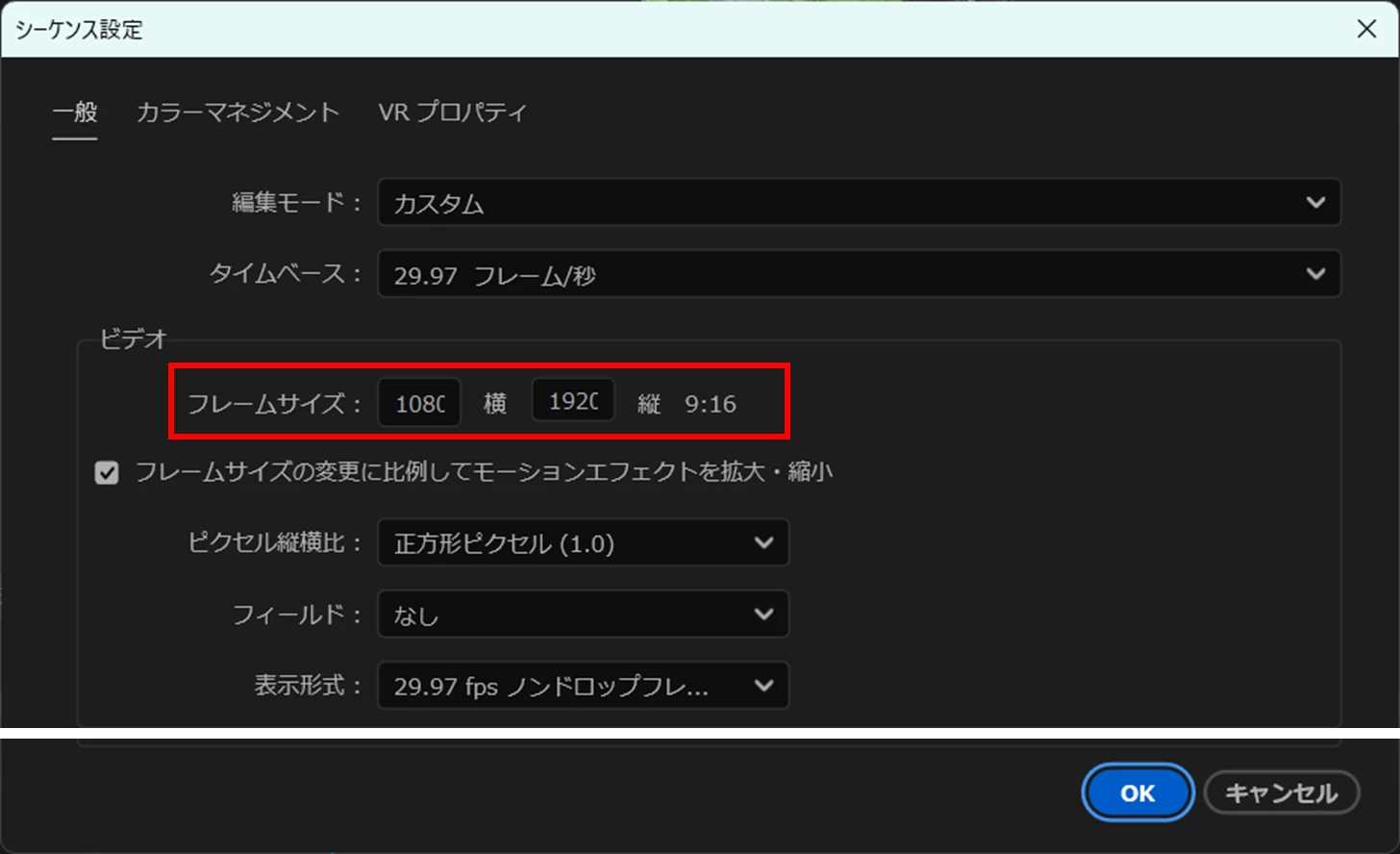 縦動画を作成しているため、フレームサイズは1920×3840から変更はできません。