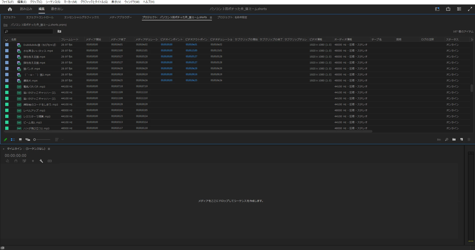 編集途中のタイムラインが消えてしまった。