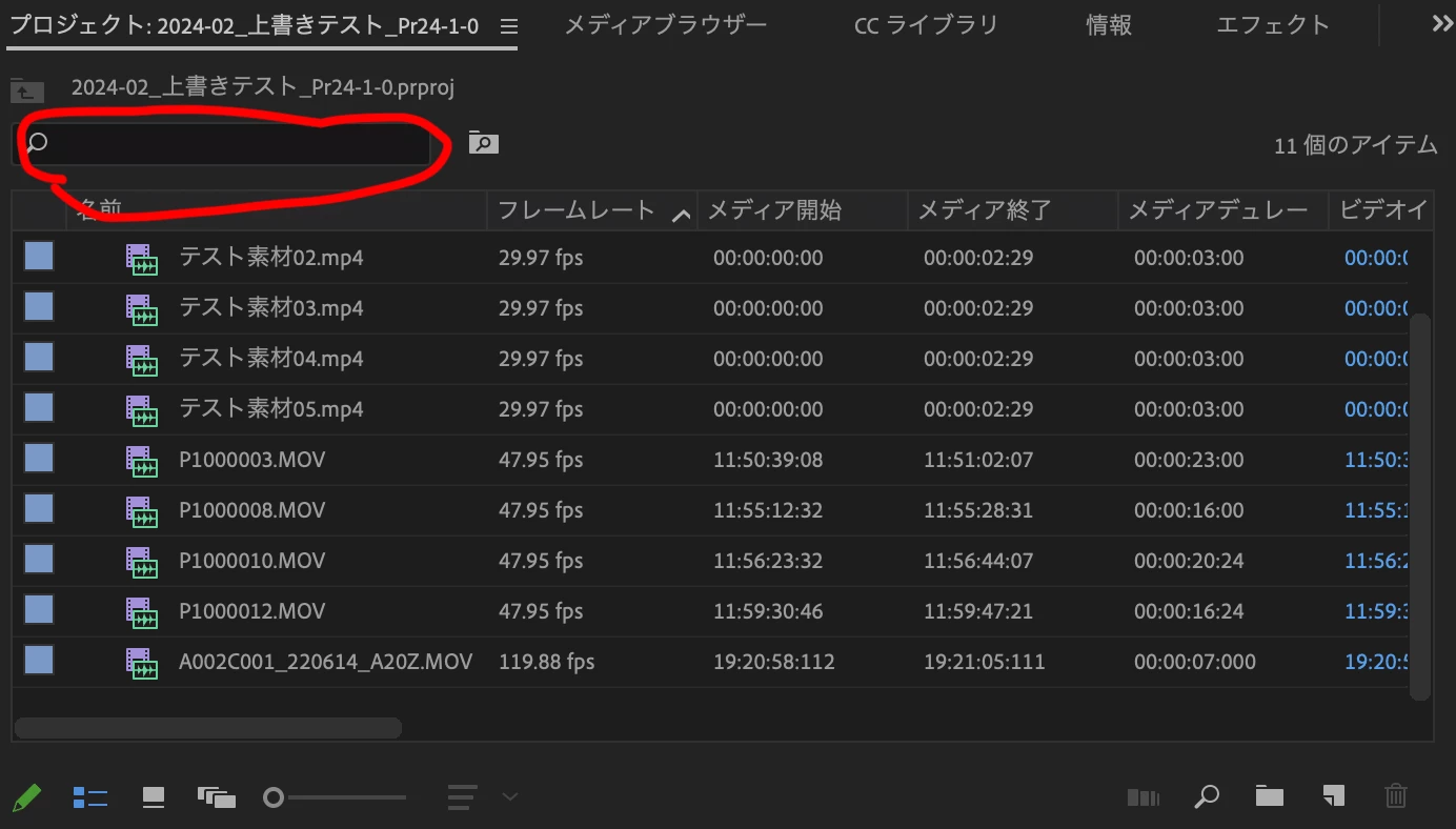 編集途中のタイムラインを閉じてしまった。
