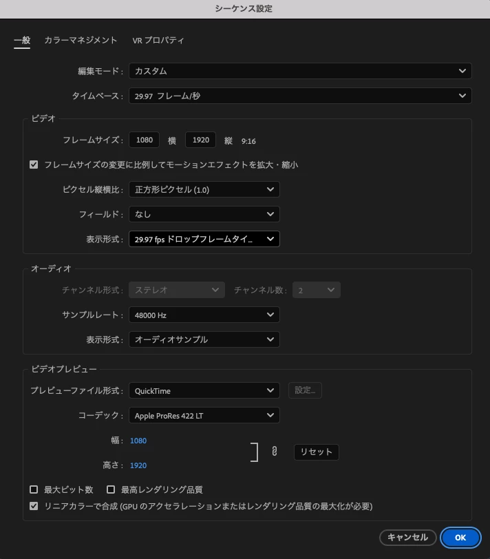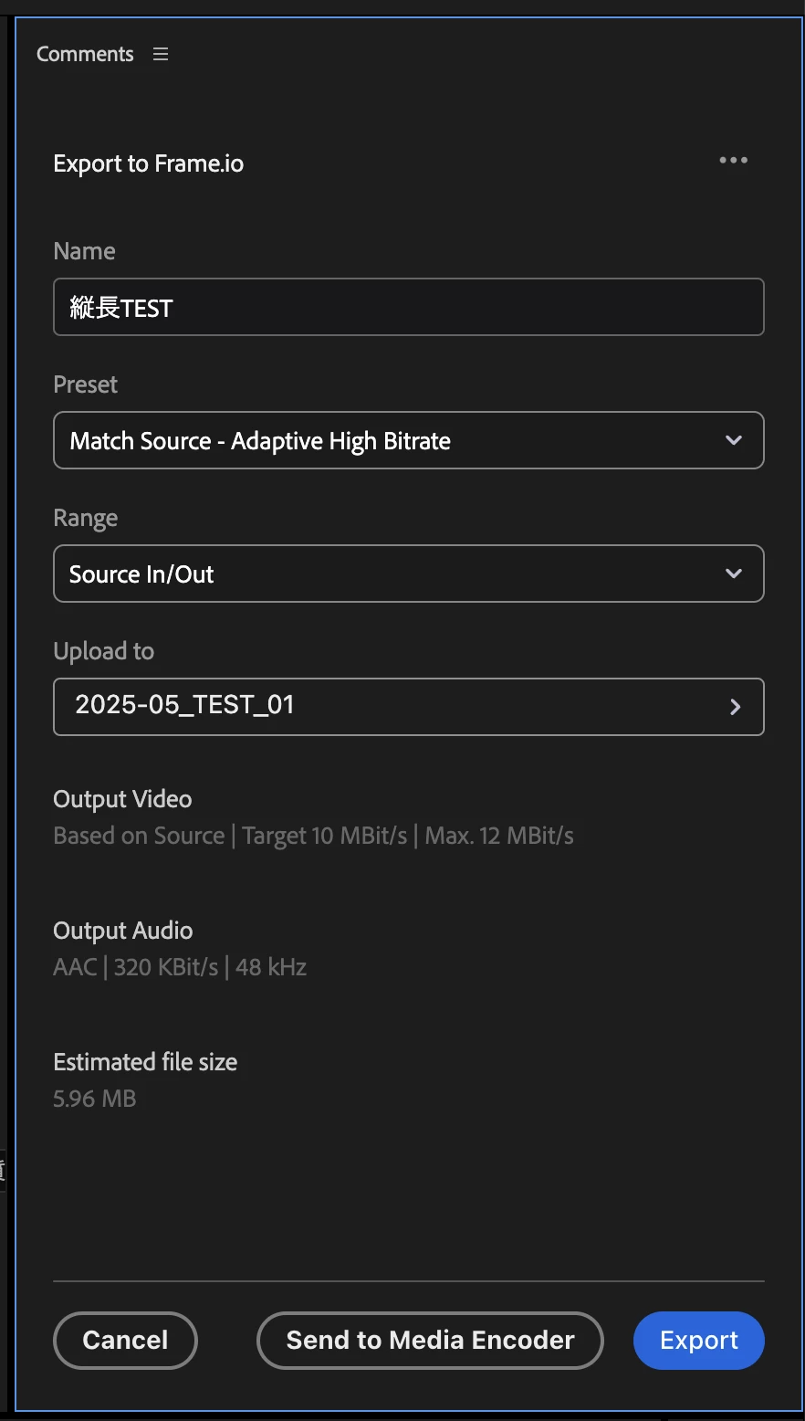 普段、Frame.ioにアップロードする際に、一旦書き出してドラッグ&ドロップでコピーしているなどの方法をお使いの場合には、その書き出しの際の設定を「縦長」に適した設定にするということになるかと思います。