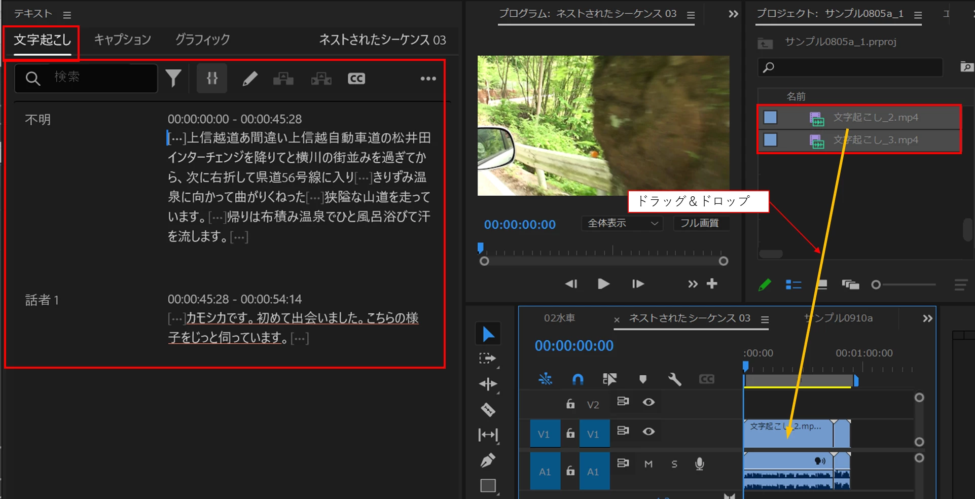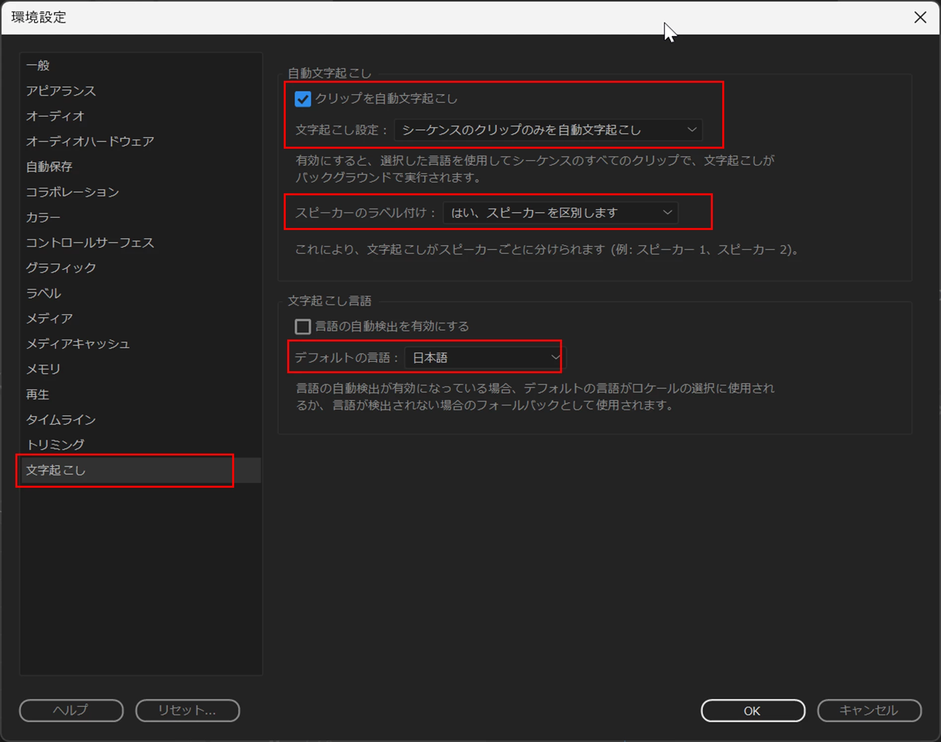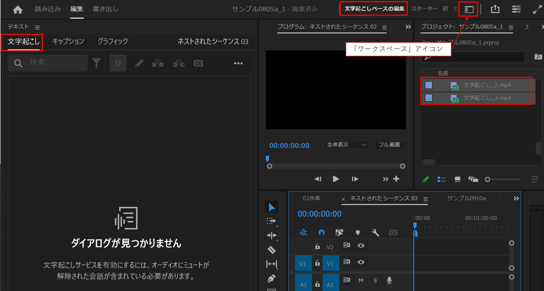 テキスト画面で文字起こしバ-が動き出し出来た!と思ったら5秒くらいで『ソースクリップを文字起こしして、シーケンスの文字起こしを表示します』とだけメッセージが出ます。ここから先をご指導のほどよろしくお願いします。
