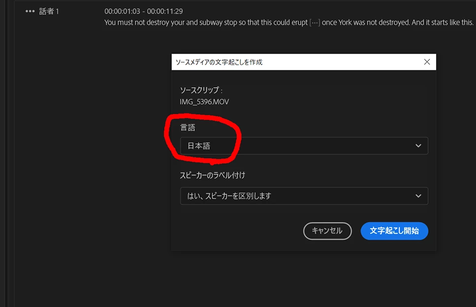 自動文字起こしが日本語にならない | Premiere Pro