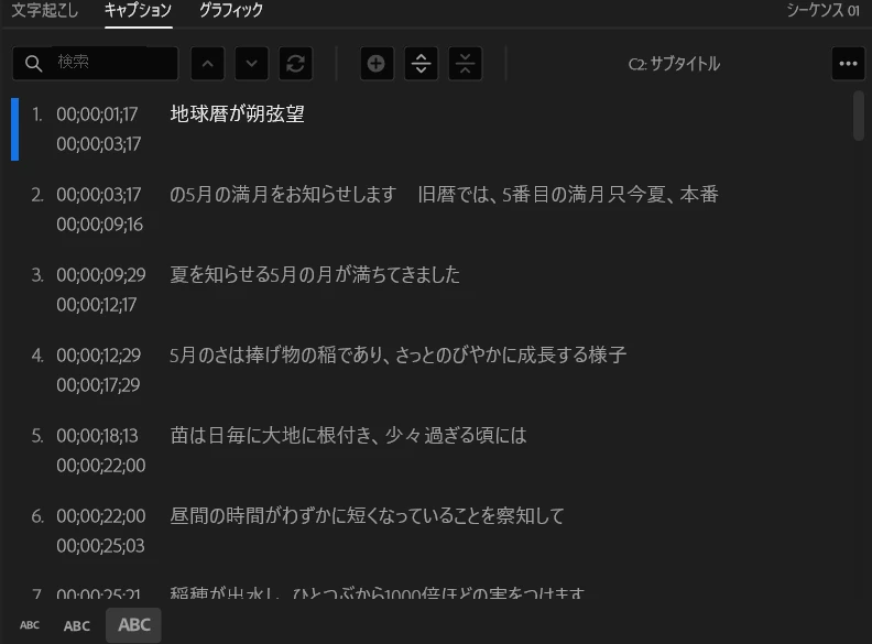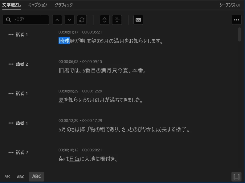 PPePPPParticipantForum|Forum|3 years agoJune 17, 2022Question自動文字起こししたセグメントを編集したあとキャプション作成すると、編集結果が反映されません。Forum|Forum|3 years agoJune 17, 20221 reply667 viewsこんにちは!自動文字起こしを使ってテロップ制作をしています。 その中で上手くいかない部分がありまして、自動文字起こしをしたあと、文字起こしウインドウでセグメントの分割や結合の編集作業をして「キャプションの作成」でシーケンスに字幕を出力するのですが、編集した内容と違う結果が出力されてしまいます。(おそらく自動文字起こしをしたそのままのものが出力されている) キャプション作成をする際の設定などでこういう結果になってしまうのか、色々試したのですが、どうしても編集した内容が反映されません。 解決方法がありましたら、ご教授願います!FAQ