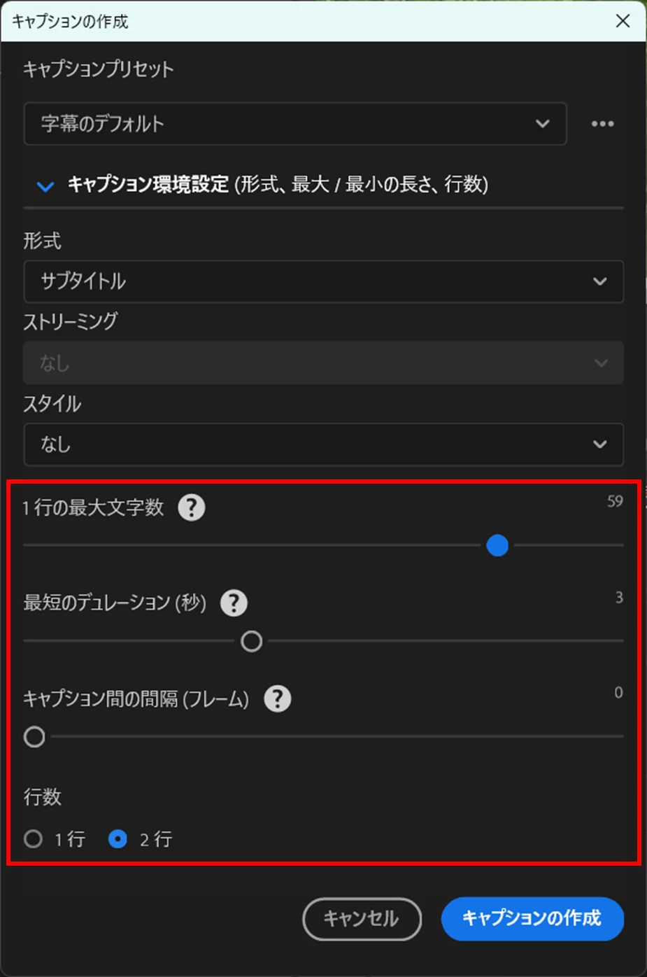①最初のキャプションセグメントで「帰りは」を分割で切り離します。