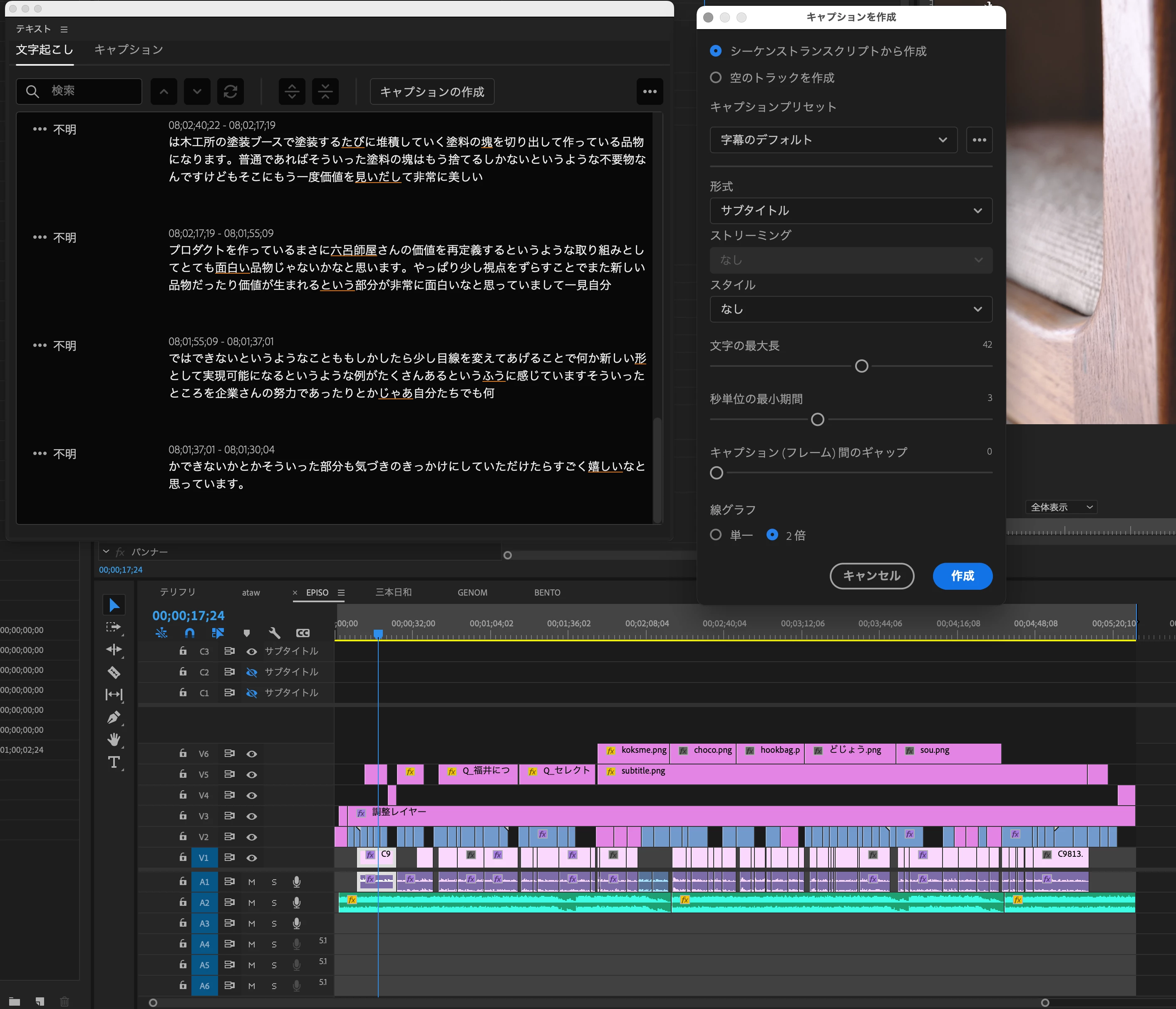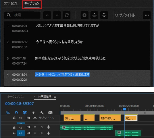 自動文字起こし後のキャプションの作成がタイムラインに反映されない