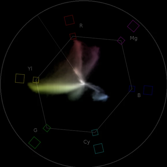 ベクトルスコープでは色相と彩度しか分からず、同じ色相・彩度でも、明暗やコントラストによって見え方が大きく変わりますので、基本的には実際の映像を見ながら合わせ込んでゆく形になると思います。