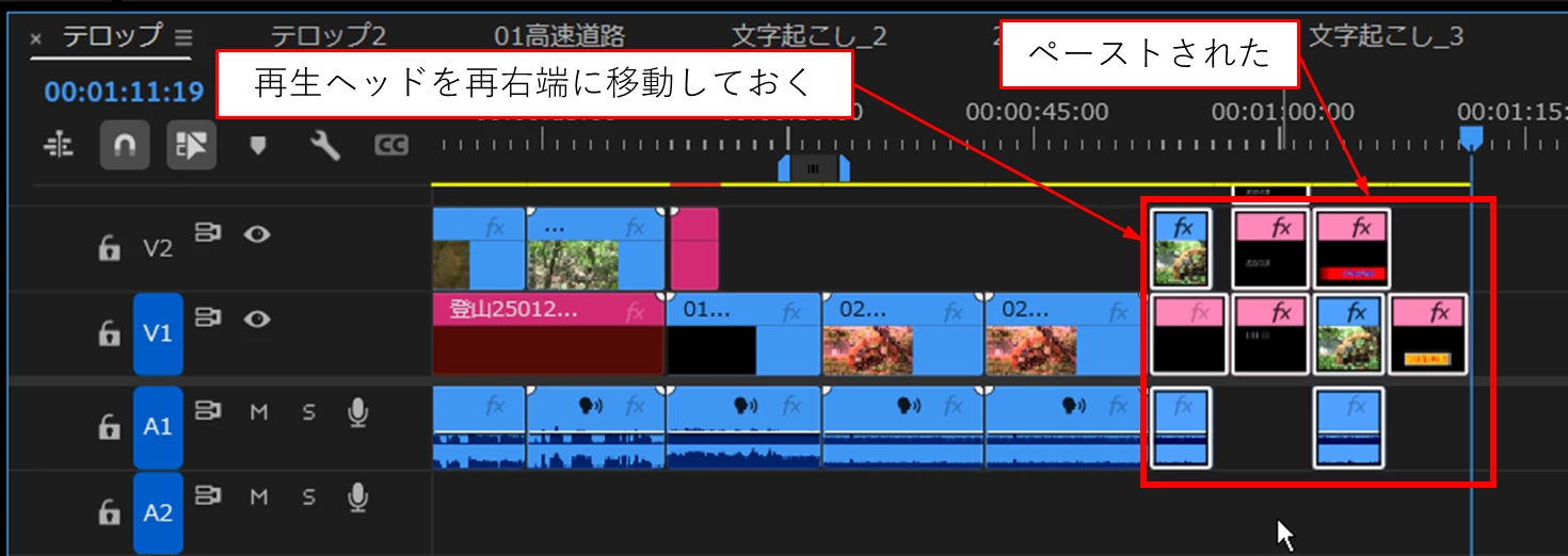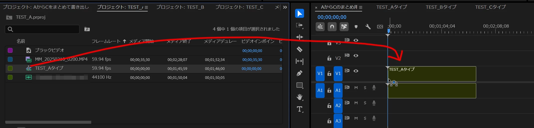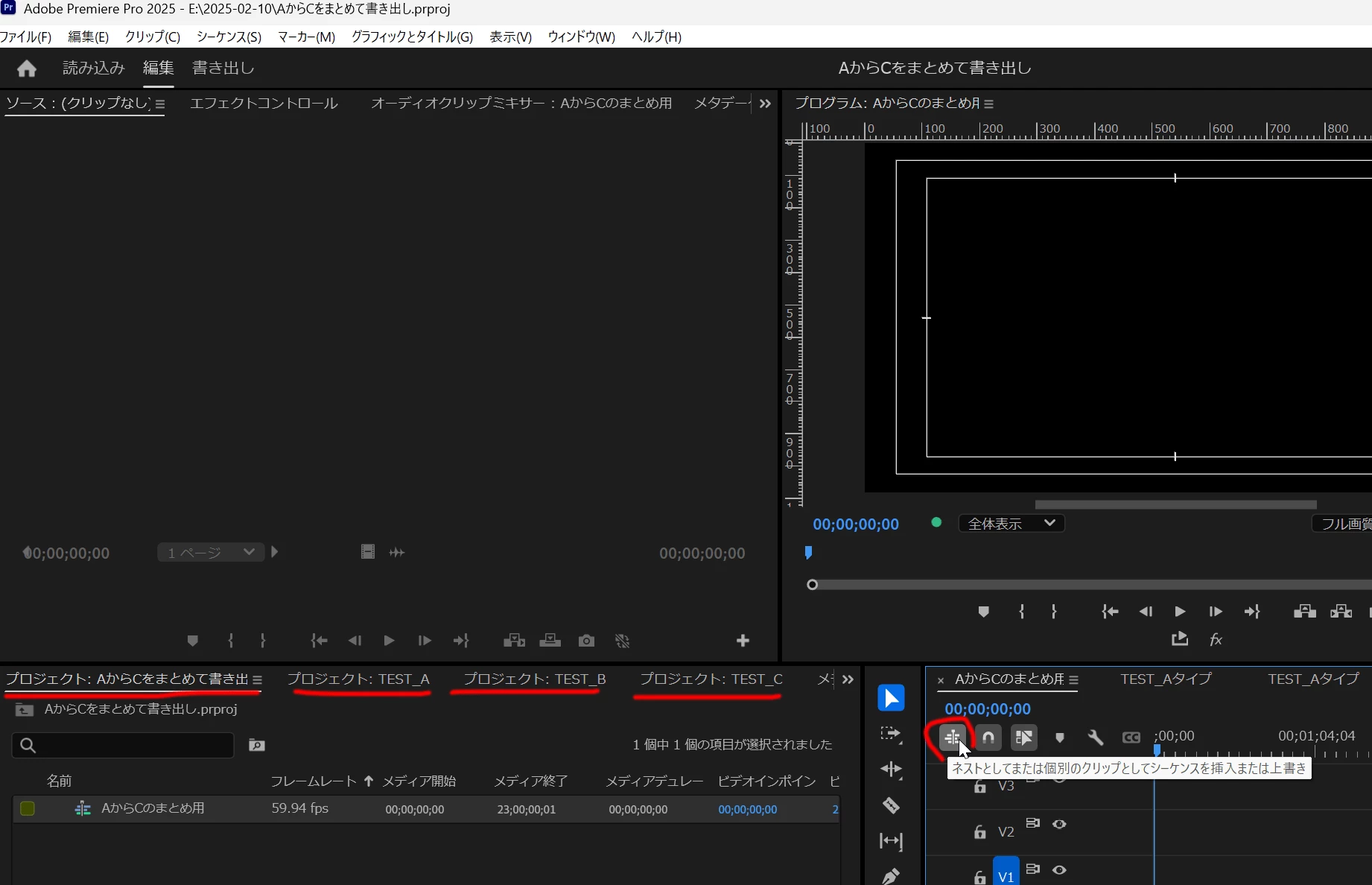単純に、どれか1つのプロジェクトファイルのタイムラインに他のプロジェクトファイルのタイムラインをコピペして書き出しをしたらできますか?