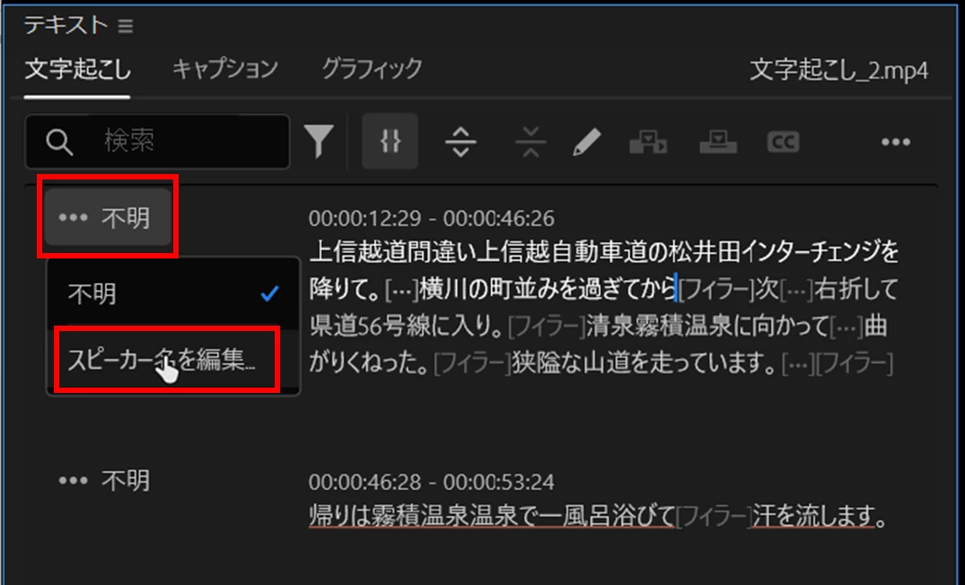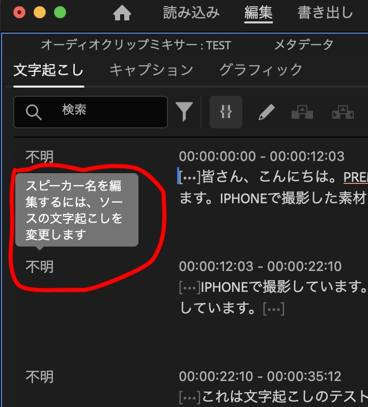 表題の件の通り、話者の名前の変更ができません。