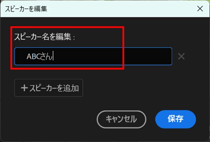 話者の名前の変更ができません。