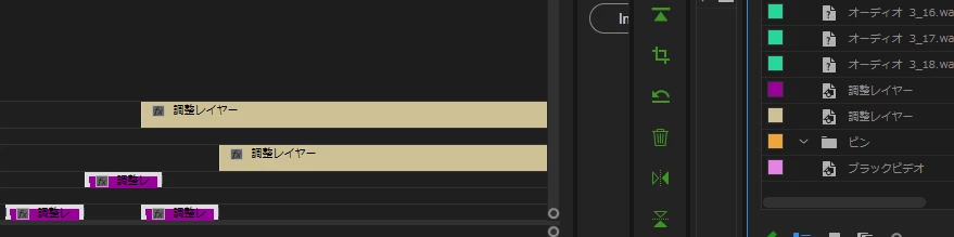 調整レイヤーをカット後、クリップごとに色分けができない