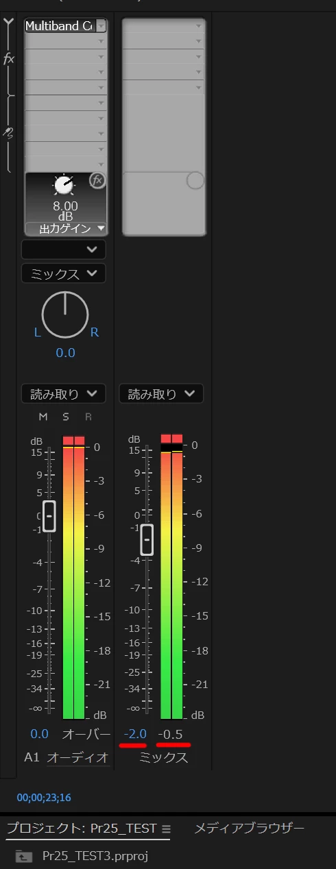 PremiereでオーディオのTrue Peakを-2dB以内に収めたいと考えています。