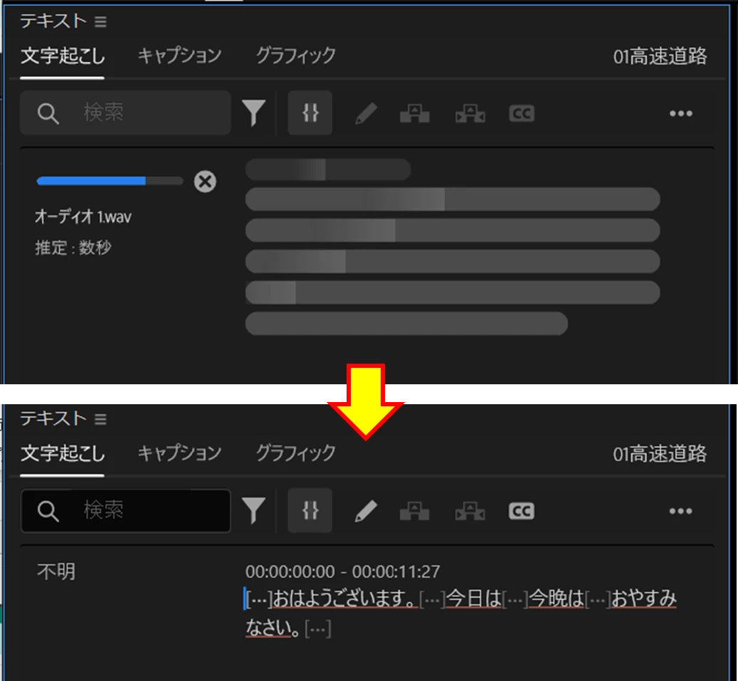 GG.S___Known ParticipantForum|Forum|9 months agoMay 11, 2025Question【質問】文字起こしがされない件についてForum|Forum|9 months agoMay 11, 20251 reply639 views表題の件に関して質問です。 始めたばかりの初心者なのですが、教材に従い簡単な設定を行い、提供されたサンプル動画をプロジェクトからタイムラインに移したところ文字起こしパネルが読み込んでいる状態(ゲージが延びている)になりました。 しかし、左に延びては、0からスタートし左に延びるを永続に繰り返しており、一向に文字起こしされません。 PCのスペックは悪くもなく、20秒もないファイルであり、教材動画もタイムラインに入れた瞬間くらいに文字起こしがすぐにされていました。 原因わかりましたら教えていただきたいです。 ver:25.2.3(ビルド4)エラー・問題操作方法・手順