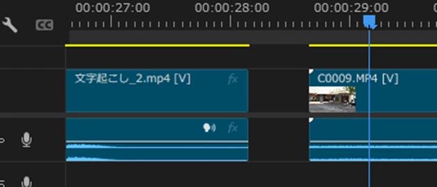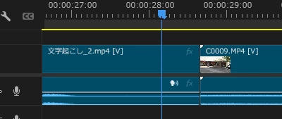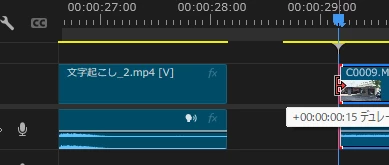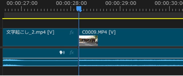 例えば、トランジションの長さが1秒の場合は、前後クリップの端をそれぞれ0.5秒以上詰めます。