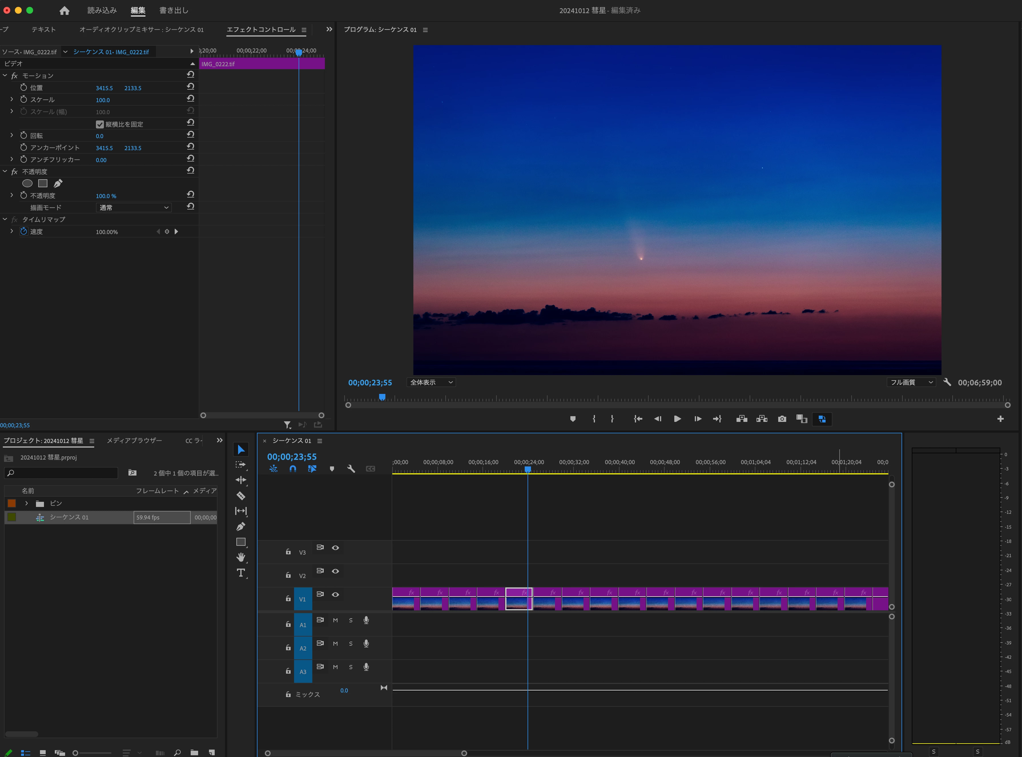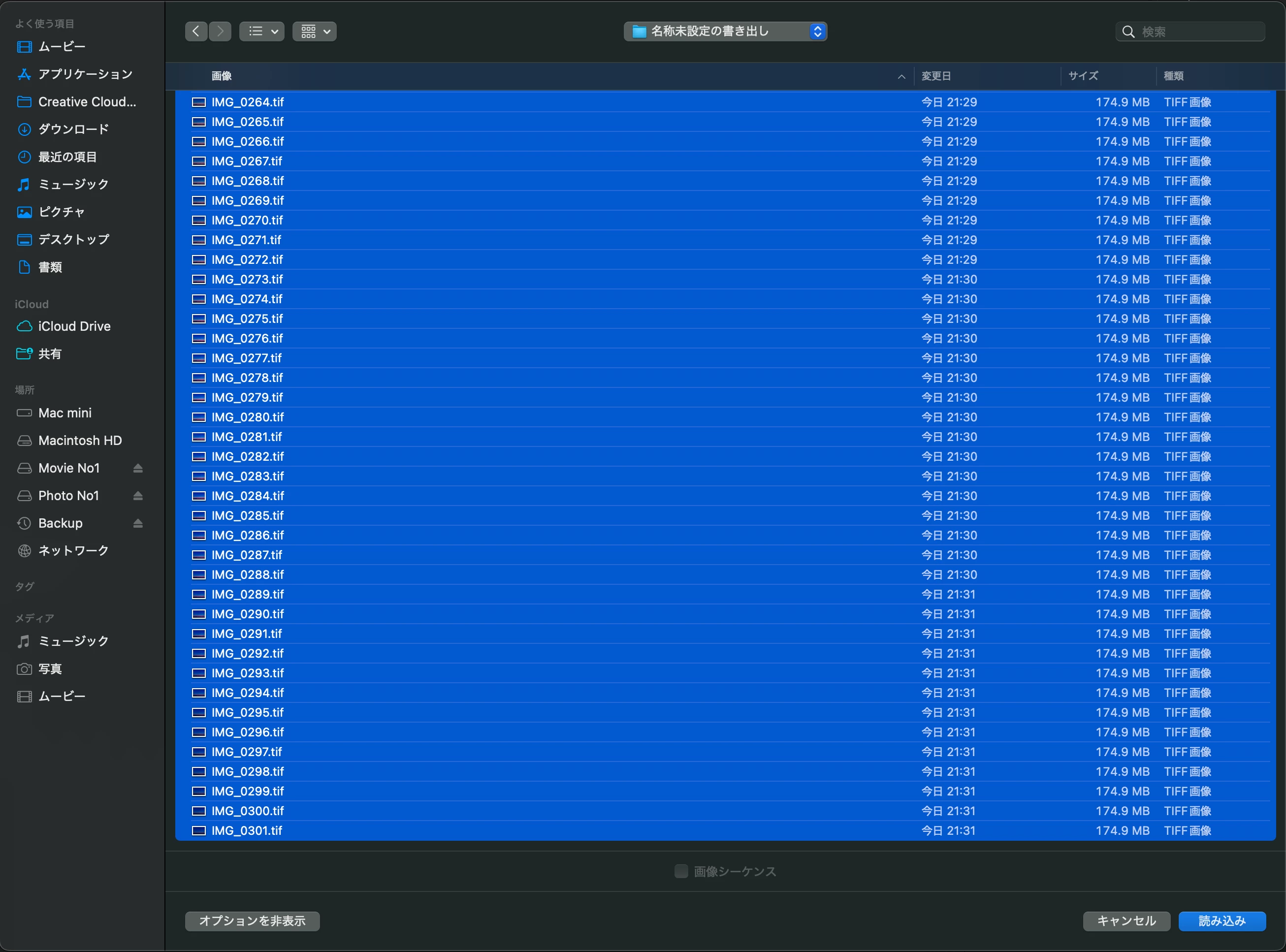 タイムラプス作成のため、Lightroom CCにて画像現像後Tiffを連番で書き出しました