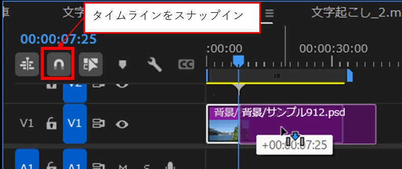 選択したクリップを再生ヘッドに吸着させるコマンドキー