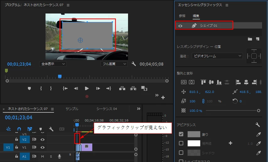 長方形のグラフィックが タイムラインに表示されません