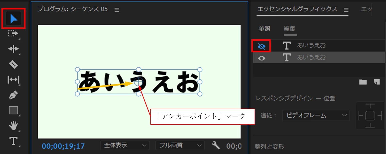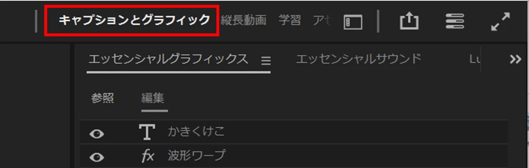 ①「エッセンシャルグラフィックス」パネルを使用するときは、「キャプションとグラフィック」ワークスペースに設定しておくと作業しやすいです。