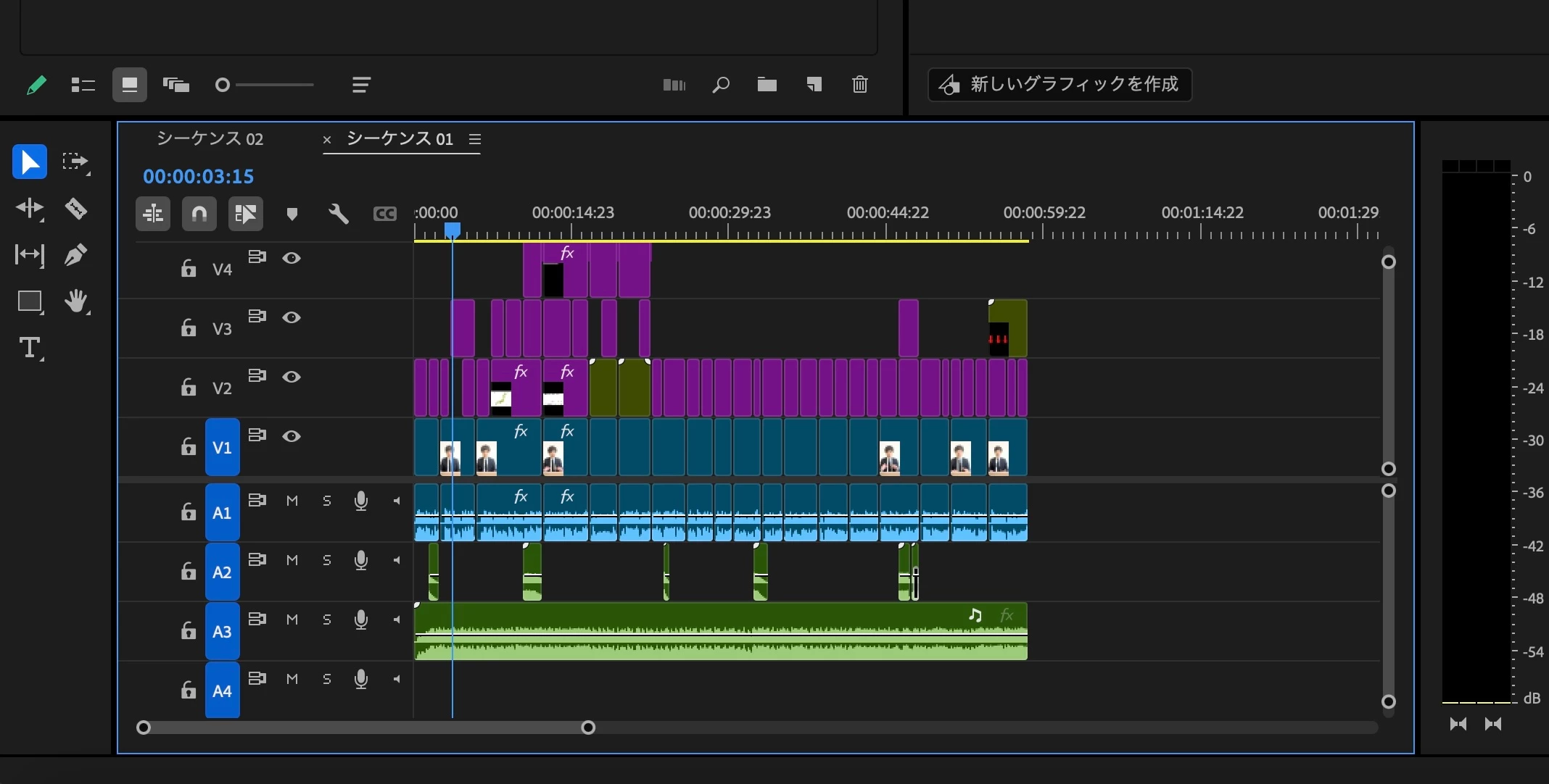 A3とA4の音声は聞こえないものの、オーディオメーターの右の方のメーターが振れていると思います。