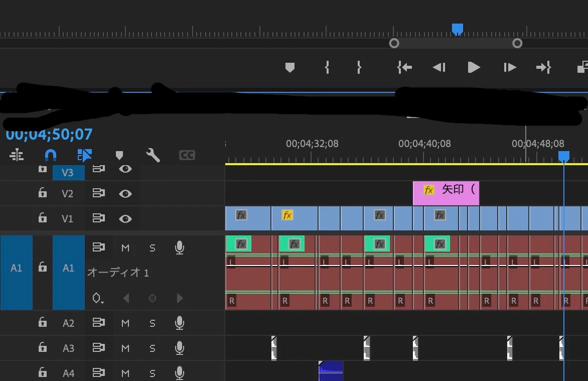 音声のクリップが茶色になり、タイムラインから再生しようとすると、音声が流れません。