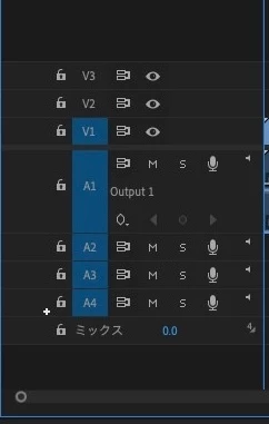 シーケンス設定がマルチチャンネル(4チャンネル)になっていて、音声トラックがモノラルのようですので、シーケンスのプリセットを今までと異なるものをお使いになられている可能性があると思われます。