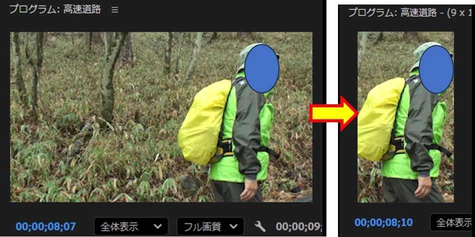>速度デュレーションを10にしスロー再生したクリップ内にある顔を、