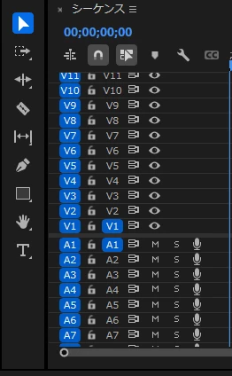「V1」または「A1」アイコンのどちらかが「ON」になっている場合は、「ON」になっているトラックに映像または音声クリップが配置されます。