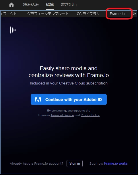 説明不足で申し訳ございませんでした。Adobe Premiere Pro における既知の問題 にあります通り、問題が生じるパネルは「ライブラリ」だけでなく、おっしゃる通り「Frame.io」も原因になります。