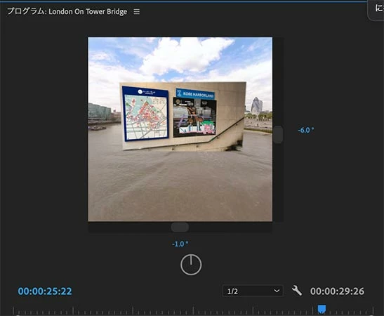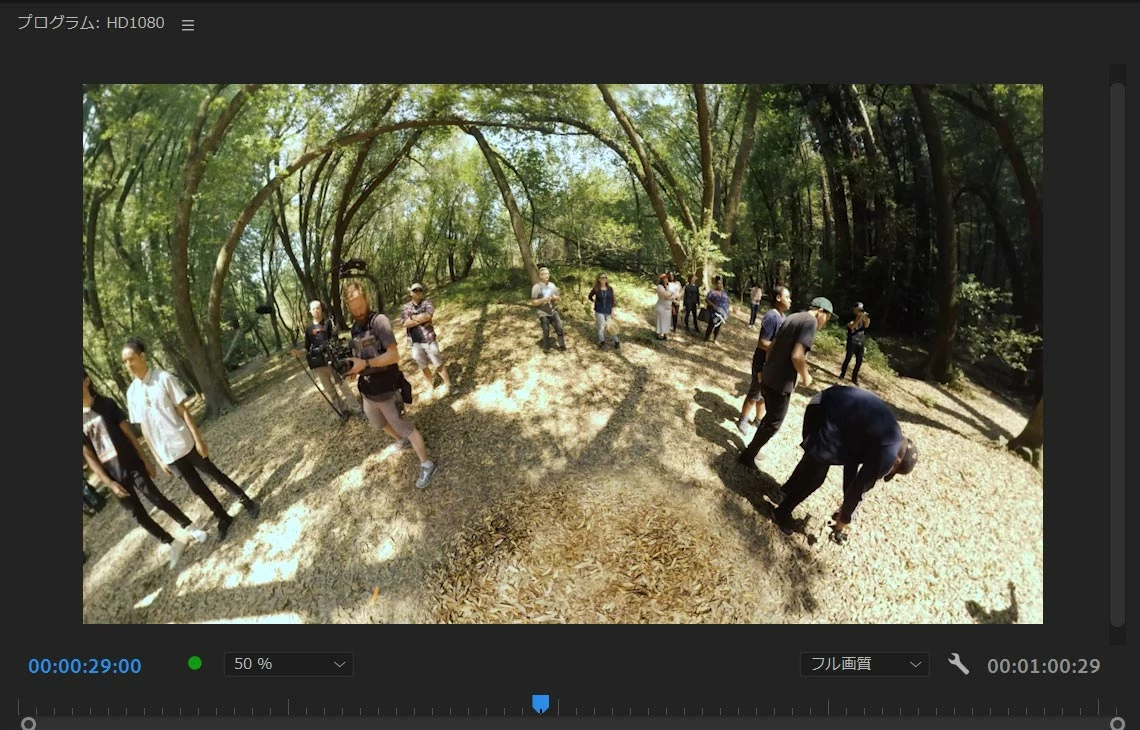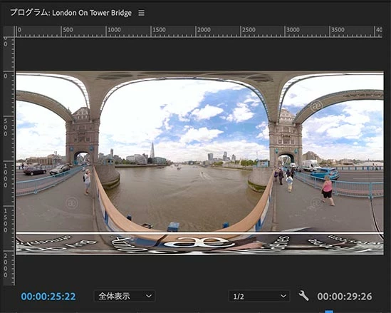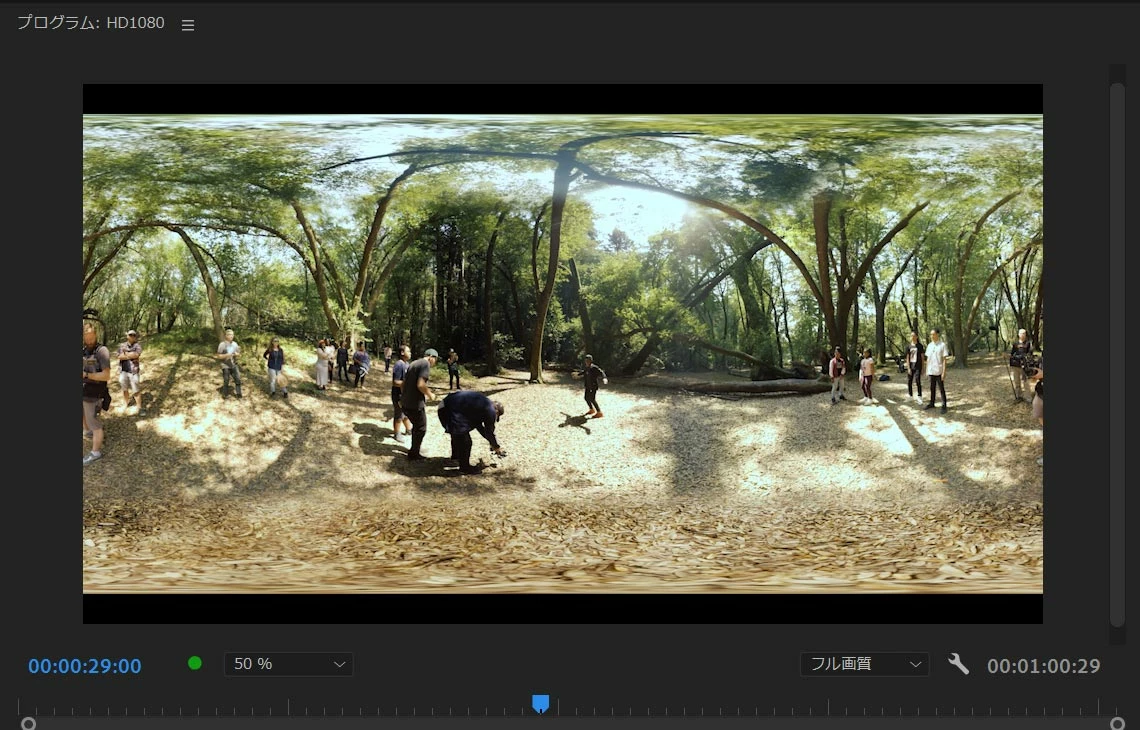 360度動画をシーケンスに読み込むと、全て360度の画面の対応になってしまいます。
