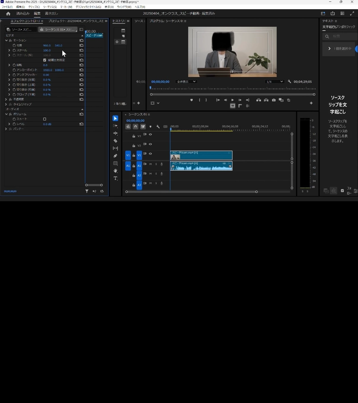元の映像の解像度のままで、サイズはシーケンスのフレームに合わせます。