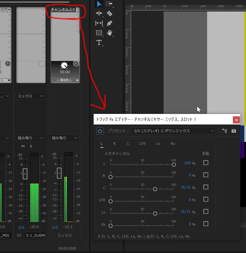 5.1chの音をステレオで書き出したい