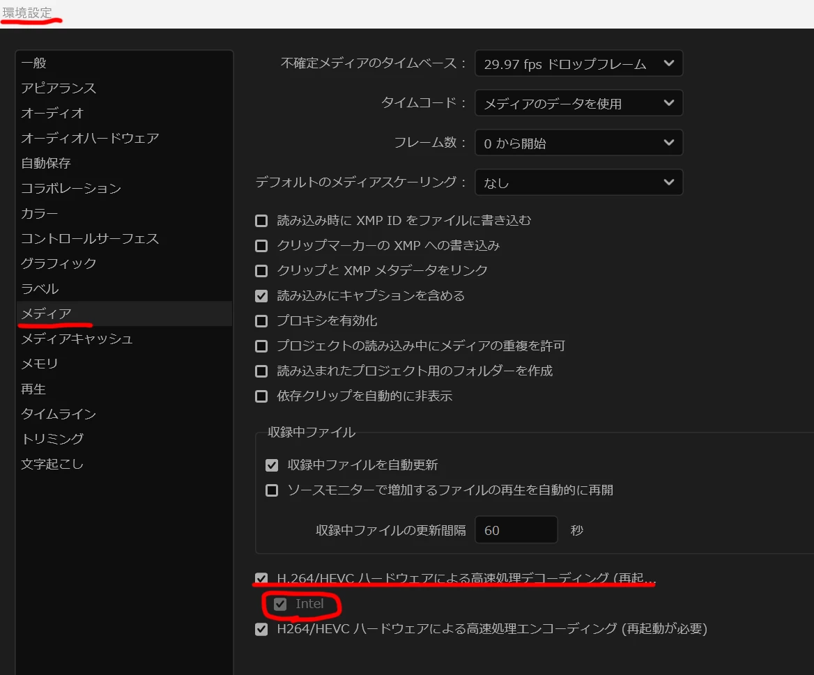 編集の過程で映像をズームアップしたり、スローにしたりといった場合には、元素材をそのまま使った方が良いのですが、そういった効果を使わない場合は「1920×1080 29.97fps」のファイルに変換・書き出ししてからPremiere Proに読み込んで編集すると、はじめから1920×1080 29.97fpsで撮影したことと同等の軽快さで作業ができるという理屈です。