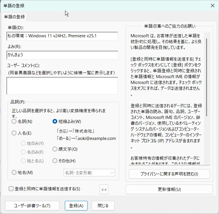 まず、OSとそのバージョン、Premiere Proのバージョン(v24.5、v25.0等)を教えていただけますか。