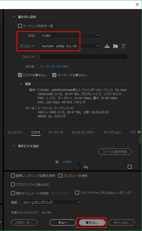 プリセット YouTube 1080p