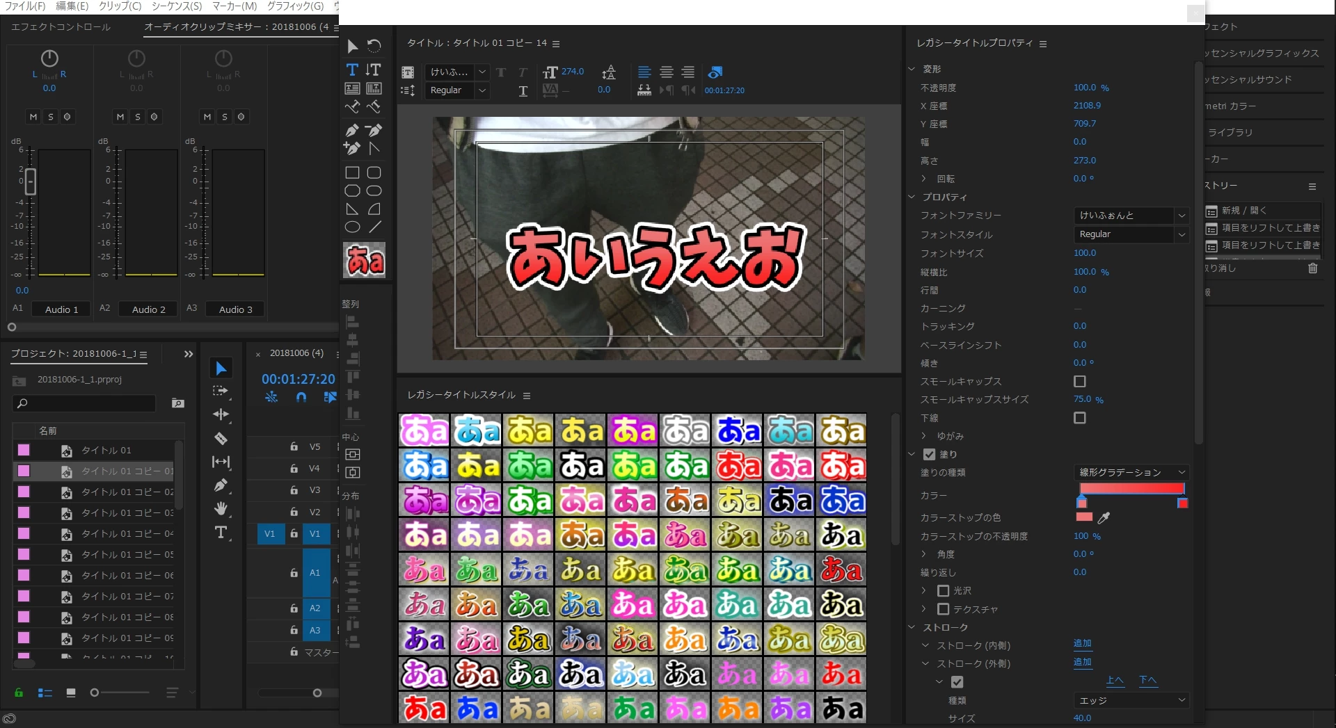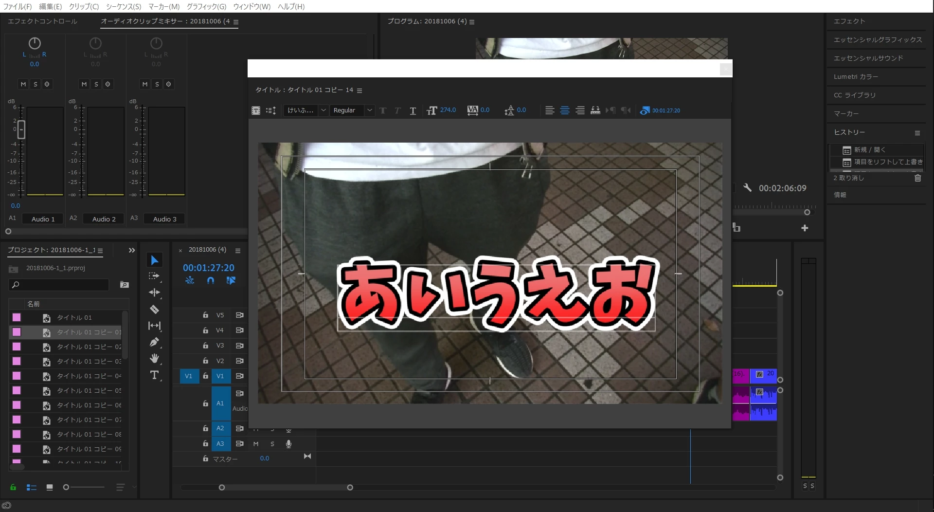 タイムライン上でレガシータイトル(文字・テロップ)をaltキーで複製した後ダブルクリックで文字を変えたり色を変えたりしたいのですが