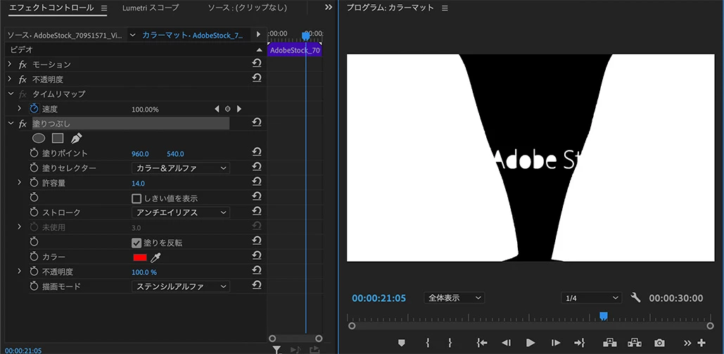 その動画の背景がクロだったので透過(透明)にすることをpremiereProでしています