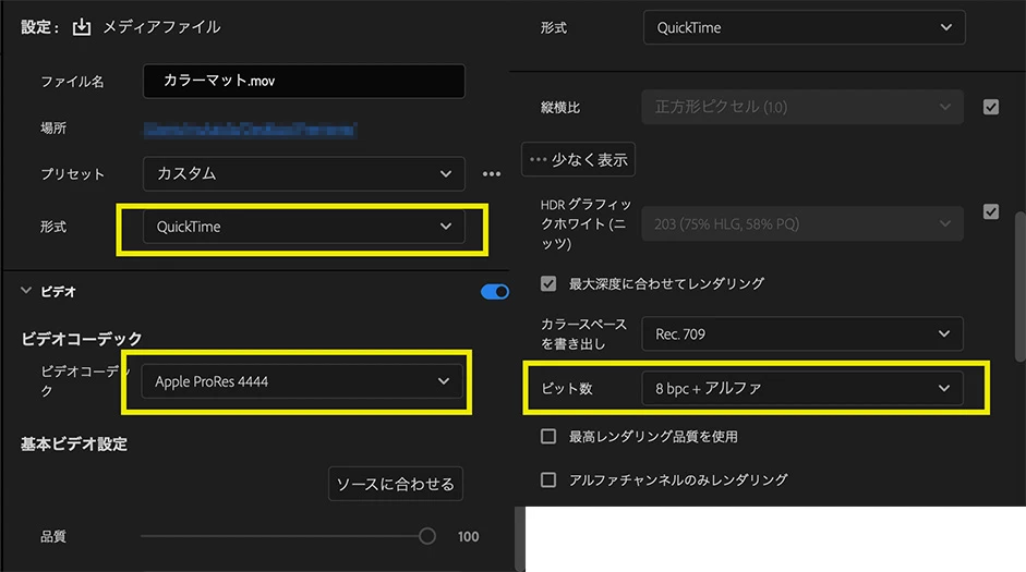 なお、ProRes 4444はWindowsの標準プレイヤーでは再生できません。