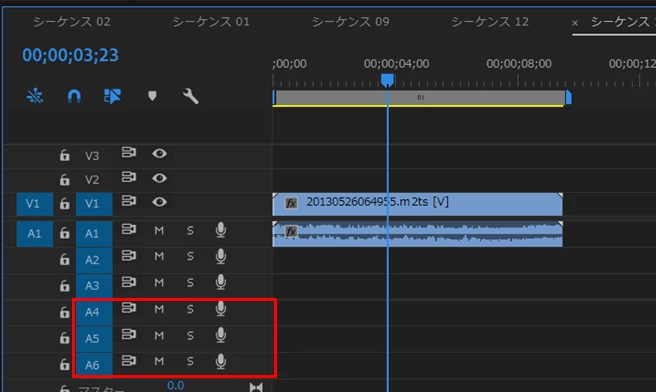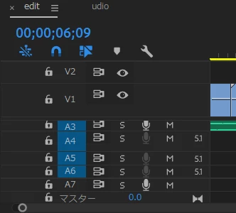 上記画像の「5.1」と書かれたA4,A5,A6クリップにaudioクリップを置くことができません。A3には配置することができたのですが、何故なのでしょうか?設定を変更する方法を教えて頂けましたら幸いです。