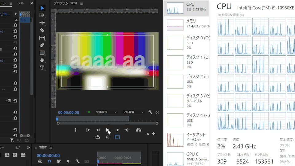 キャッシュの削除やメモリの割り当て、再生時の解像度を下げる、GPU処理で再生など等見直している状態です。