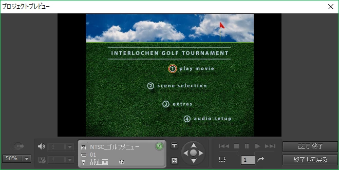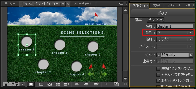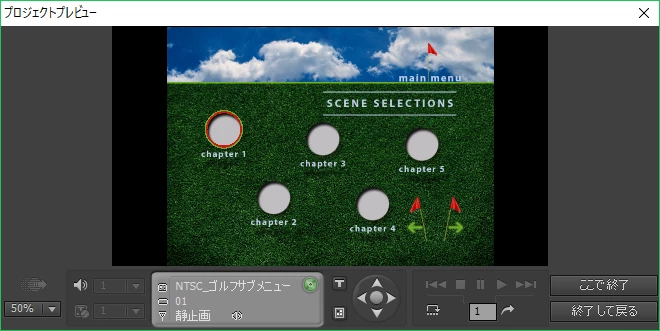 DVDメニュ表示したときにチャプタースイッチを選択表示ハイライトさせない事