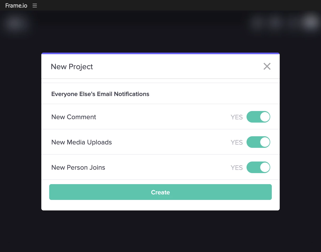 Frame.ioでファイルを作成したいのですが、『create』をクリックしても反応しません。