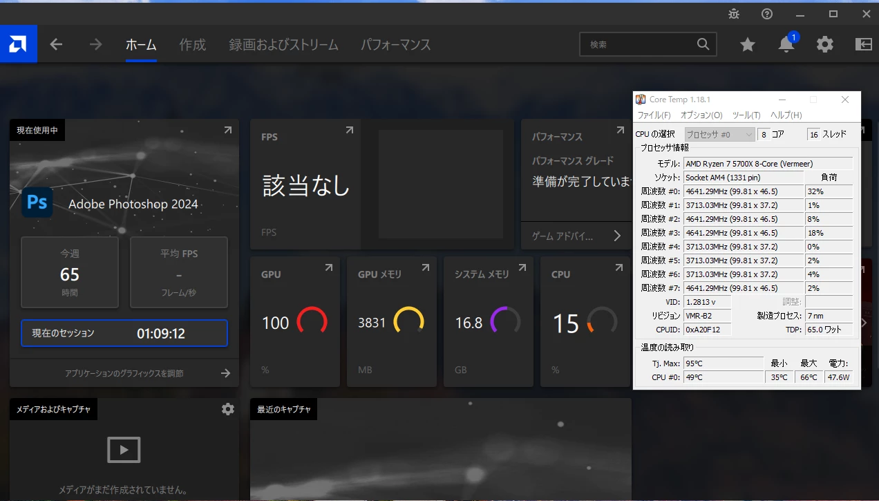 動画編集時にGPU依存しすぎなのか、CPUがほぼ動いていない(再生時に全てのコアが10~30%程度)といった感じです。