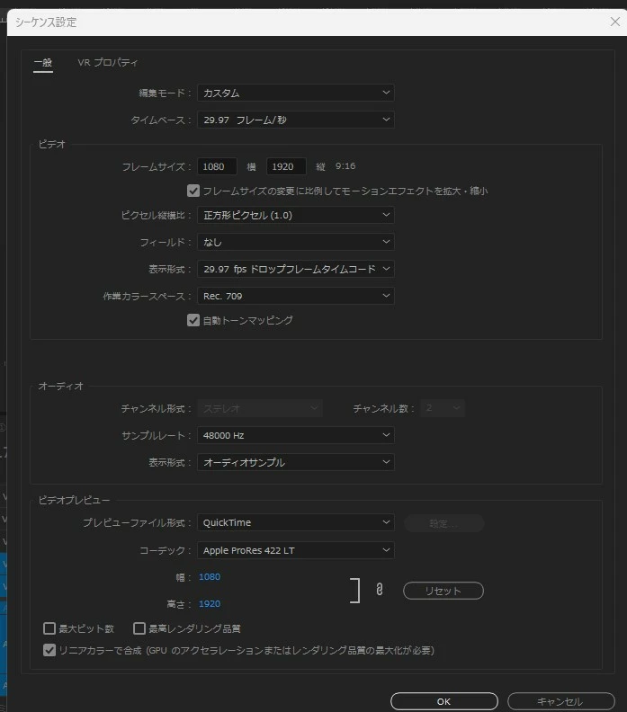 プロジェクト設定→ビデオレンダリングおよび再生→GPU高速処理(CUDA)にするとプレビュー画面が真っ黒になる(音声は出る)
