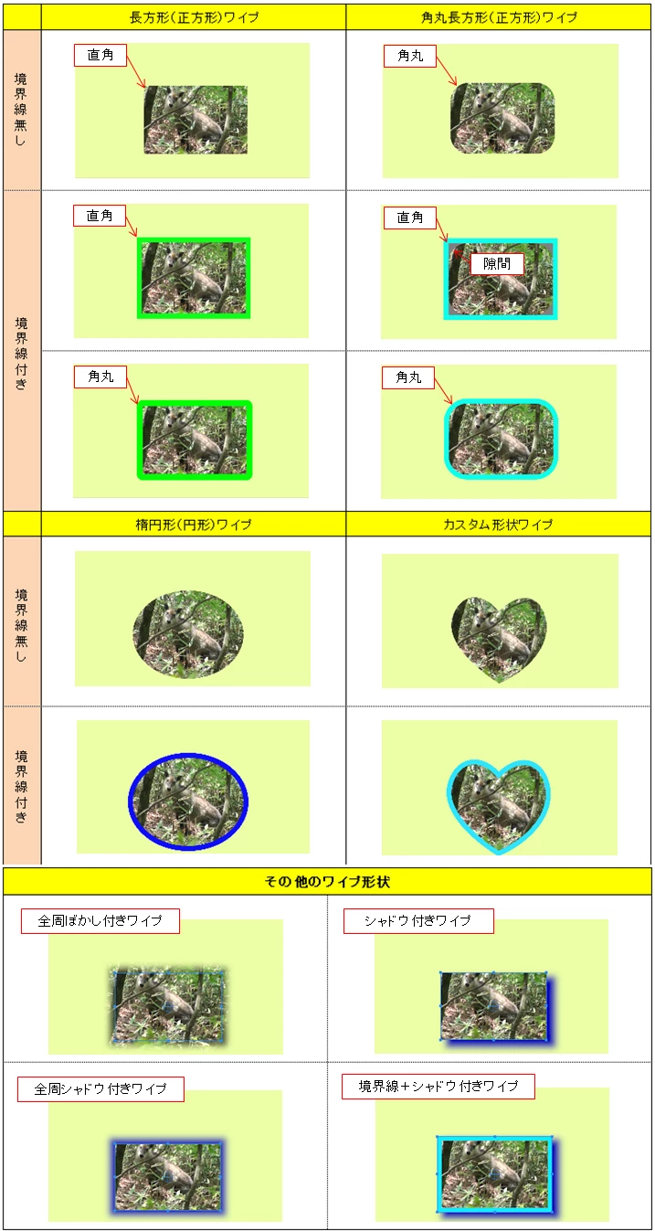 詳細は、愚作「ワイプ画面」マニュアルをご覧ください。マニュアルはExcelで作成してあり、下記リンクからダウンロードできます(ダウンロード期限;設けていませんが、ダウンロード出来なくなった場合はご容赦ください)。参考にして頂ければ幸いです。